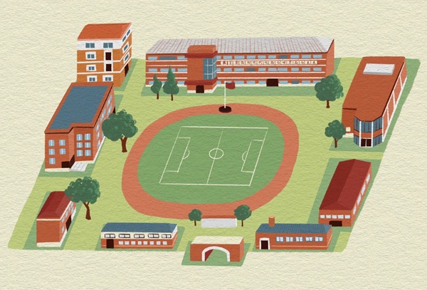 tranh vẽ cảnh trường học
